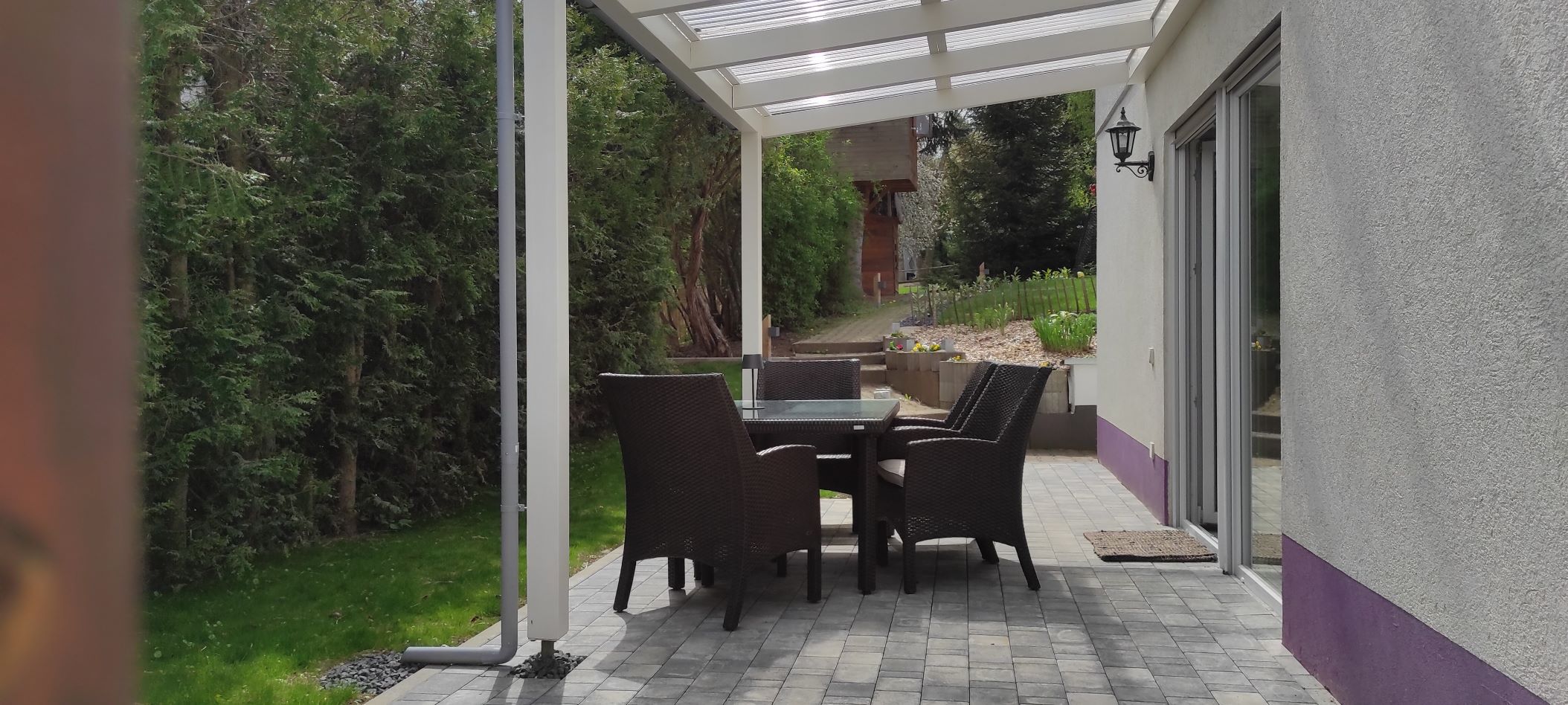 Zu der Doppelhaushälfte gehört eine große Terrasse, auf der herrlich gefrühstückt oder gegrillt werden kann. Derzeit wird der Garten neu angelegt, so dass unsere Gäste bald eine Grill- und Feuerstelle nutzen können. Zu unserem Grundstück gehört ein großer Hof, auf dem Kinder ausreichend Platz zum Spielen haben. Alle Spielsachen und Geräte dürfen natürlich jederzeit mit genutzt werden.