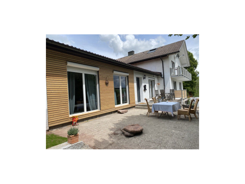 Zwei schöne Ferienwohnungen (1 x 65 m² und 1 x 53 m²) jeweils mit überdachter Terrasse und Garten. Sehr ruhige Waldrandlage im Ortsteil Kappel, wenige Gehminuten zum Streichelzoo.